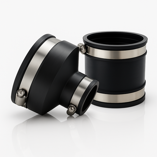 Transition Coupling | Connects Cast Iron, PVC, ABS, and Steel Pipes | Flexible Rubber Coupling with Stainless Clamps