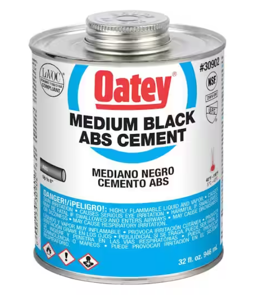 OATEY ABS Medium-Bodied Black Cement, Available in 8oz 16oz 32oz
